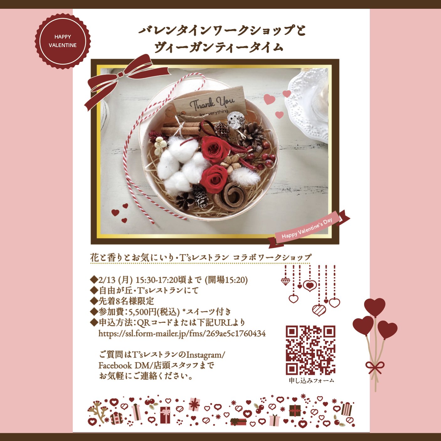 2/13(月)バレンタインワークショップとヴィーガンティータイムのお知らせ