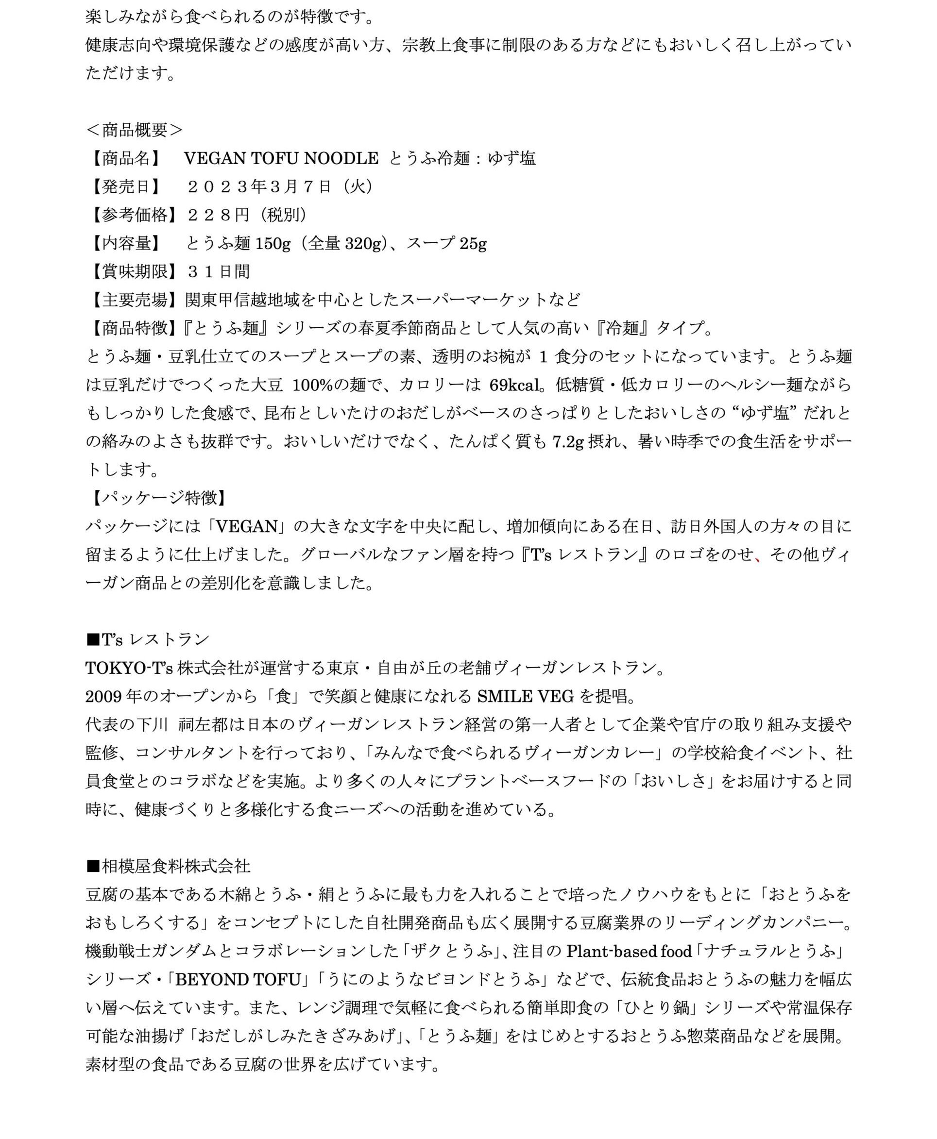 T’sレストラン監修「相模屋VEGAN TOFU NOODLE とうふ冷麺 ゆず塩」新発売!