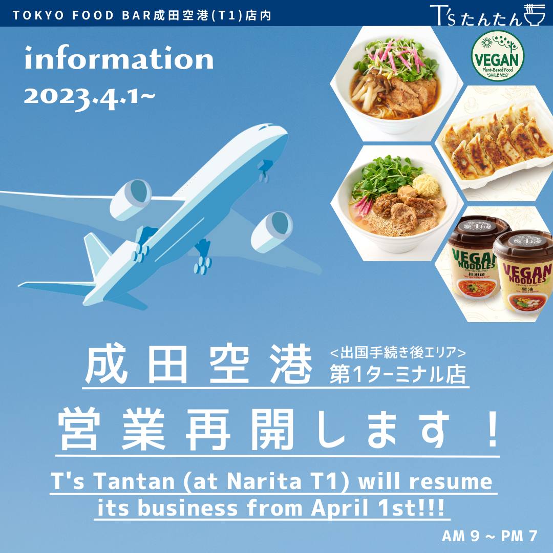 T’s Tantan at Narita T1 will resume its business from April 1st